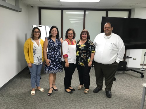 Defensa de tesis de Angélica Valdez. En la foto la Dra. Bernadette M. Delgado, la Dra. Marla Pérez, Angélica Valdez, la Prof. Mildred Cortez y el Dr. Julio César Hernández. 08-16-18